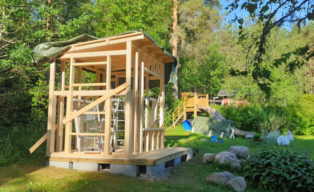 Leikkimökkiä saatiin aluksi rakentaa helteisissä tunnelmissa, mutta nyt seurana on tyypillisempää suomalaista kesäsäätä. Menossa onkin ensimmäinen pakollinen vapaapäivä työmaalta. Rungon jälkeen työlistalla oli katto, jonka pohja tehtiin raakaponttilaudasta. Katon reunaa kiertävät laudat ja listat löysivät lopulliset paikkansa vasta työn edetessä ja ihan mukavaan lopputulokseen päästiin tälläkin taktiikalla. Katon koko suunniteltiin … Jatka artikkelin Leikkimökin rakentaminen (osa 4) – Katto ja ikkunat lukemista