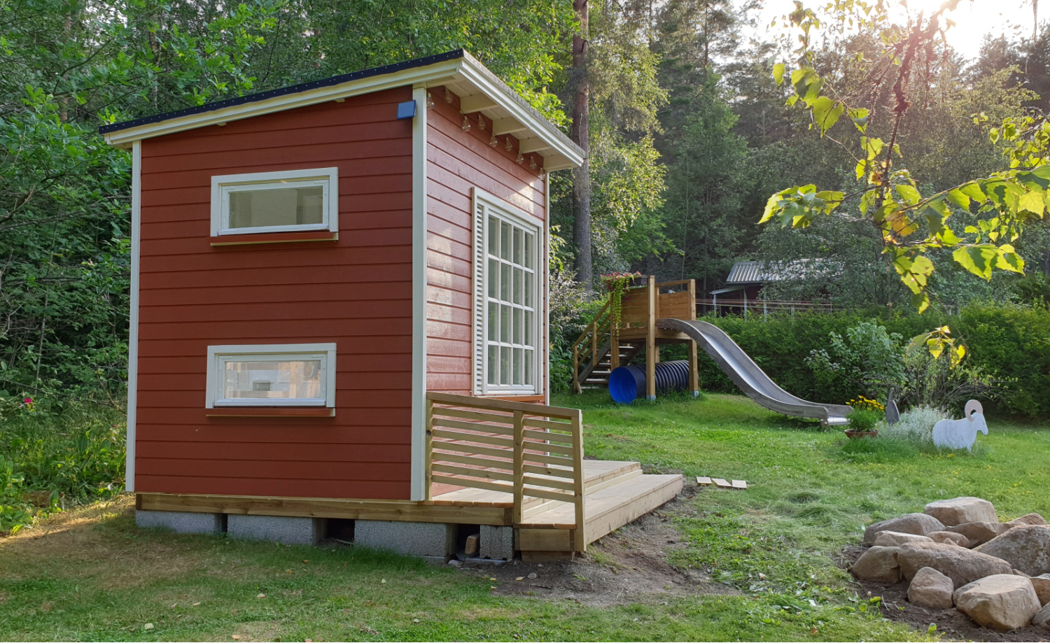 Modernin leikkimökin rakentaminen ja kustannukset.